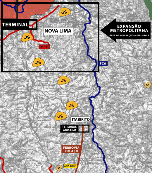 As operações de mineração se deslocam na direção sul de Belo Horizonte, onde grandes minas convivem com condomínios residenciais e comerciais ambientalmente adequados.
